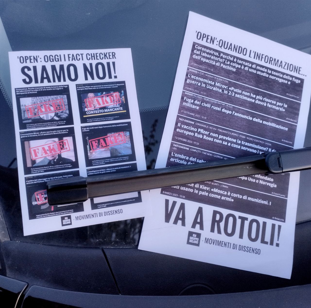 16/03/2023 Flash-mob davanti alla redazione di Open, testata online fondata da Enrico Mentana e attualmente diretta da Franco Bechis, che si occupa di fact-checking per conto di Facebook/Meta, diventando di fatto censore di pensieri e opinioni non aderenti alla narrazione unica e al politicamente corretto.