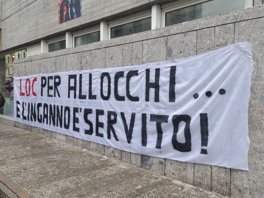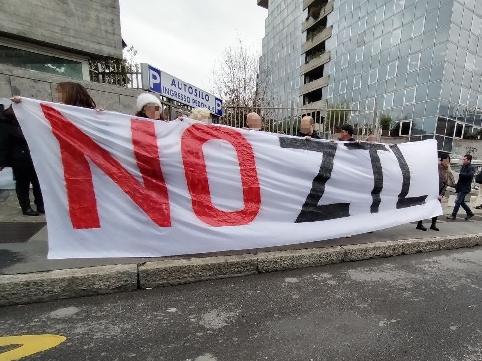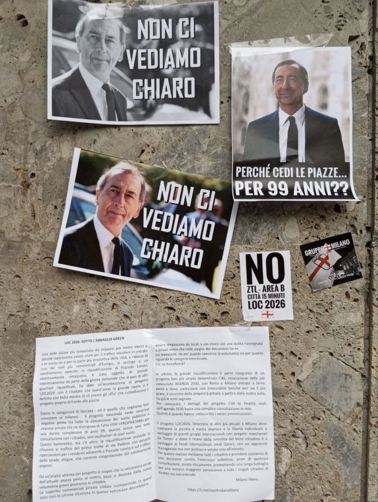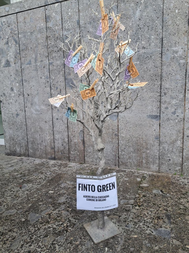 09/11/2023 Flash-mob davanti alla sede di LOC2026, progetto di rigenerazione urbana “resiliente e a zero emissioni” di piazzale Loreto, vincitore del bando internazionale avviato dal C40 Cities Climate Leadership Group.